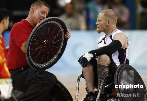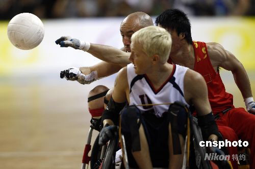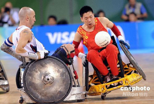 图:残奥轮椅橄榄球开战 中国队不敌美国队
