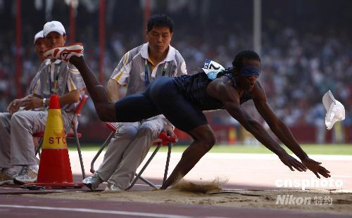 图:残奥会三级跳远选手不慎和裁判相撞