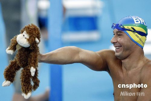 图:巴西游泳选手携“猴子”亮相决赛场
