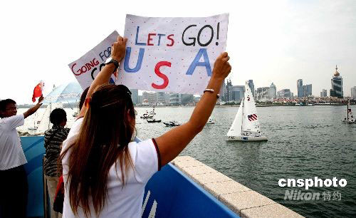 图:热情观众为残奥帆船赛选手加油