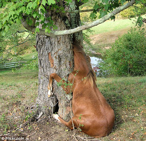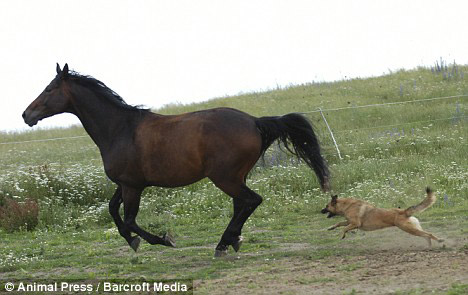 图:被逼急了 德国一匹马疯咬牧羊犬