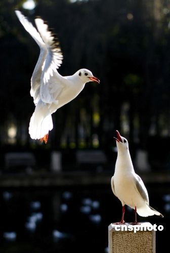 红嘴鸥成双嬉戏 提前飞抵昆明越冬