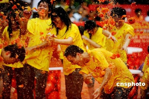 趣图:广东东莞上演万人“番茄大战”