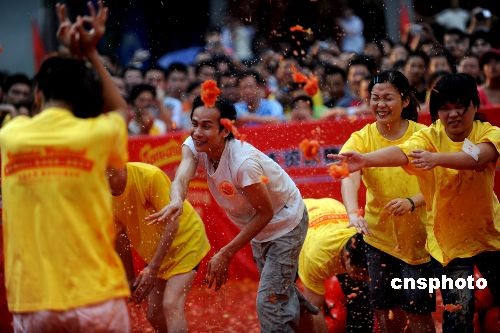 趣图:广东东莞上演万人“番茄大战”(2)