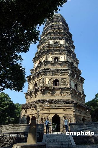 苏州虎丘塔保护完好 塔身倾斜吸引游人