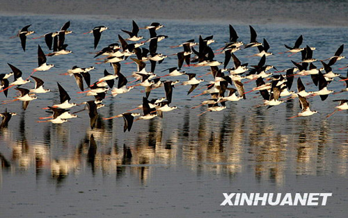 图:盐湖鸟影