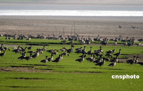 图:鄱阳湖水位超高 8万候鸟湖汊觅食