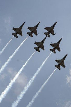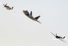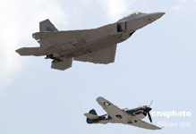 当地时间5月4日,位于美国南加州河滨县的一个美国空军预备基地举行规模盛大的航空展和飞行表演。C-17A全球霸王运输机、C-5银河运输机等空中巨无霸和F-22猛禽战机等美军先进军用飞机亮相展览,F-22战机飞行表演、美国空军“雷鸟”飞行队的特技表演等令近十万民众大饱眼福。