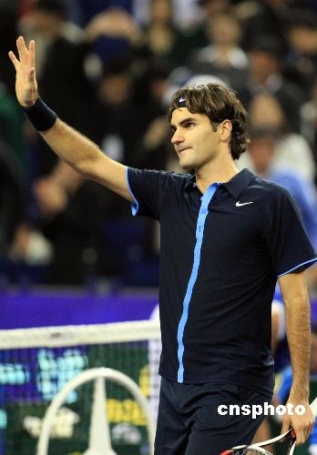 图:费德勒战胜对手迎来上海大师杯首胜