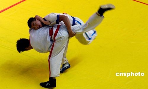 图:第六届农运会上演精彩纷呈的舞狮赛