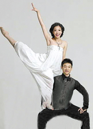 图:杨威杨云婚纱照 摆高难度体操POSE