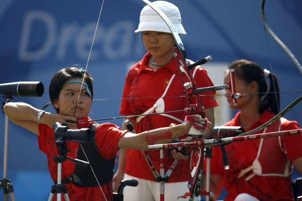 9月15日,北京残奥会迎来第九个比赛日的征程,产生50枚金牌。其中游泳在最后的比赛日产生17枚金牌,另外一个金牌大户田径产生18枚金牌。15日上午在国家体育场进行的女子铁饼F42/44/46级决赛中,中国队包揽了金、银、铜三枚奖牌,金牌总数达到64枚,超越了雅典残奥会的63枚。