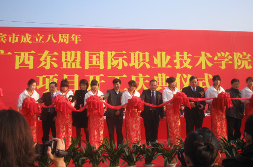 12月28日,来宾市成立8周年之际,在来宾华侨农场举行了广西东盟国际职业技术学院项目开工仪式。该项目投资5亿元,占地1000亩,总建筑面积36.59万平方米,设置教学、生活、文体活动三大功能区,项目建成后校区将以全日制学生1.5万名稳定规模办学,每年向社会输送5000名各类专业人才,能有效缓解来宾市及广西和东盟经济飞速发展对人才的需求,对促进来宾城市化水平的提高有着极其重要的意义。(张祖良)