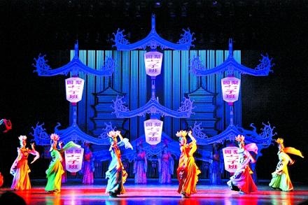 连日来,福建省泉州市举行精品戏剧剧目巡演活动,全面展示泉州优秀剧目,让人民群众共享文化发展成果,推动泉州市文化艺术的繁荣发展。10月10日晚,“光明之城”大型歌舞在泉州文化艺术中心举行。图为歌舞中的“韵结唐宋”片段。 (陈英杰 摄)