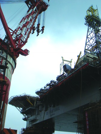 记者在烟台莱福士的造船工地看到,多个半潜式钻井平台正在建造之中。莱福士业务拓展部经理助理李伟告诉记者,这种半潜式平台在海洋工程行业中算是附加值极高的产品了,而目前该公司已经有7个类似钻井平台的订单了。(许恺玲 崔滨)