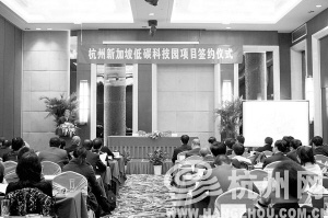值得一提的是,杭州—新加坡低碳科技园项目落户杭州钱江经济开发区,受到了新加坡主流媒体的关注。连日来,新加坡知名财经报纸《business times》在头版等版面进行了连续跟踪报道。