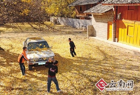 “以前很多村民流行给雌雄银杏树逐一配对,并将它们结为‘夫妻树’,就是希望雌银杏树能多多挂果。”黄志明说,后来村民逐渐知晓,雄银杏树的授粉能力非常强,借助风力的帮助,一棵雄银杏树可以给5000多棵雌银杏树授粉,也就是能保证5000多棵雌银杏树挂果。(来源:春城晚报 戴川 黄雪飞 苏忠 龚祖金/摄影报道)