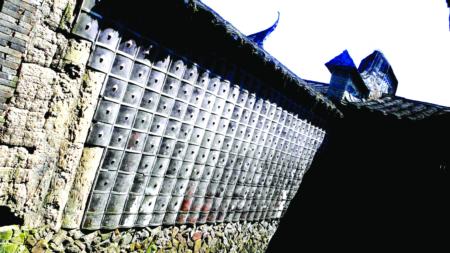 记者还注意到,寨子内还有不少机关,城墙下半部有几十个小洞,用来安放照明灯具便于夜间行走。在城墙的上半部,每隔十几米就有一个外小内大的喇叭形梯形窗户,站在窗前,可以清楚观察外面动静,而屋外看不到里面的情况。