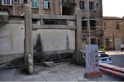 步入泉州市第三医院门诊楼旁,一块石制门牌坊矗立在角落,背靠墙壁的门帘,“小山丛竹”题字,因年久字迹有些黯淡。要不是门牌坊前一块新漆的石制牌坊,上面醒目的“小山丛竹”及简介,很少人知道这里曾是泉州古八景之首。
