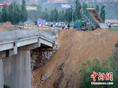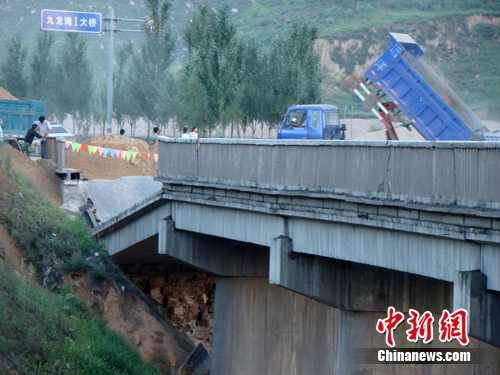 中新网7月2日电(高增平)1日凌晨1点左右,山西吕梁市兴县忻黑公路九龙大湾桥(1号桥)发生垮塌,致使陕、晋、蒙运煤大道忻黑县段全线封闭禁止通行,逼使过往车辆绕道通行。目前,运煤的车辆及客运等车辆严重拥堵。此次大桥发生垮塌没有造成人员伤亡。