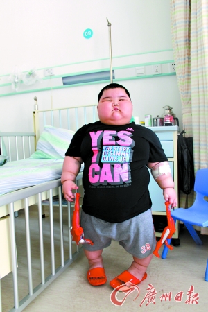 昨日,父母专程将小豪带到了广州一家医院检查,医生却没有查出小豪的身体有任何病症。小豪的父亲卢先生说,他真希望有人能帮小豪减减肥。