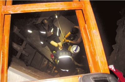 香山消防中队消防员到场后,在塌陷坑上方搭建安全支架。几名消防员下到坑底,为杨先生系好安全绳索,其中一人还脱下衣服为赤膊的杨先生披上,随后顺利将其拉到地面。已等在一旁的120急救人员迅速将杨先生送往医院。