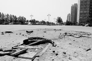 昨日10时许,记者在龙卡公园东南角看到,这些窨井有三四米深,标有“高压危险”字样的窨井盖,有的被炸得四分五裂;有的井圈被炸断,井盖飞出去四五米远;离爆炸中心十米远的地方散落了很多水泥碎块,公园便道上停放的自行车上也落满灰尘,便道砖也损毁严重。