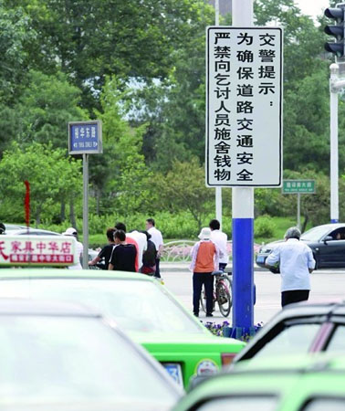 近来,在省城石家庄“迎宾大道”裕华路与建设大街交叉口,交管部门竖起的两块“新式”交通警示牌引发市民议论。“为确保道路交通安全,严禁向乞讨人员施舍钱物”的警示语赫然入目,对此,记者在采访中也听到了社会各界的一些不同看法。
