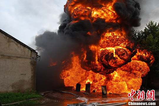 中新网义乌7月10日电(记者 董齐 通讯员 刘雷标)今天早晨7点15分许,浙江省义乌市北苑街道义浦路一甲苯仓库起火发生剧烈爆炸。事故发生后,当地消防官兵立即赶到现场扑救,经过一个小时的努力,爆炸引发的大火终被成功扑灭。幸运的是此次事故未造成人员伤亡。