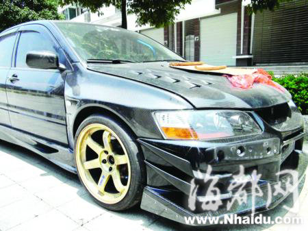 阿超指着停在他旁边的一辆黑色的EVO跑车说,这辆车才是他的目标,可是恐怕很难跟得上,现在只能用一些其他车上拆下的旧件改装。据他介绍,那辆黑色的EVO跑车属于福州某地产商公子的,家里豪车无数,可这位公子却钟情于改车玩车,在这辆EVO跑车上已投入了100多万元,现在正准备将车上的坐椅等物拆除,加装防滚架,对发动机再次升级后送往北京,参加在那里举行的赛车。