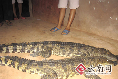 据西双版纳自然保护区勐腊派出所的所长代旭介绍,他们赶到现场后,发现这两条两米多长的大鳄鱼正趴在李明周的家中,没有人敢靠近。检查后也没有什么外伤,便将其带回派出所暂时看管。但是,两条鳄鱼是不是中国原产鳄鱼,为什么会出现在小磨公路的隧道中?警方表示还在调查。
