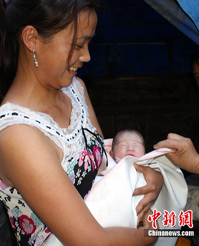 中新网7月20日电(靳廷江 记者刘忠俊)“7.17”特大洪灾给四川万源带来巨大损失, 但无情的洪灾确难挡生命的延续。19日18时26分,万源市重灾区大竹河镇的一间救灾帐篷里传出婴儿的啼哭声,一名孕妇产下——“洪水宝宝”。