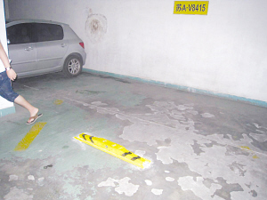记者随即来到大厦负二楼的停车场,一睹机械车位的芳容。“好家伙,不大的停车场里还真的停放了不少车辆。”原来,为了将停车位数量发挥到最大极限,这里的停车场充分利用了楼层的空间,借助机械设备将停车场分为上下两层,使停车数量翻了一倍。那么市民爆料的人防工程停车位在那里呢?记者注意到,在机械车位的对面地面上还停着不少辆汽车,奇怪的是,每个停车位下面都安装了地锁,似乎是防止别的车辆乱停乱放。 就在记者感到纳闷的时候,记者抬头突然发现,在机械车位对面的墙体上有些人防工程的标识。