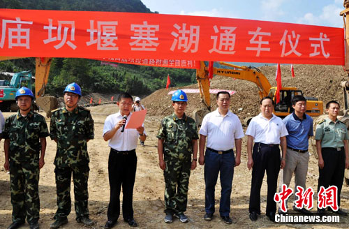 中新网重庆8月6日电(章莹 樊官勇 江奉武)6日上午9时许,重庆城口庙坝堰塞湖恢复通车仪式在此间正式举行。随着了“瘫痪”了19天的城口至开县路段恢复通车,当地堰塞湖受灾地区中断交通已全线恢复。