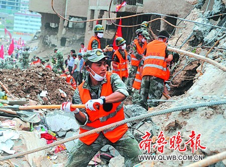 战士们忙着救人,以至于忘了温家宝总理到现场的具体时间。
