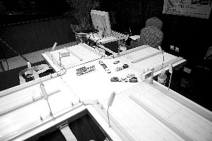 在一张大桌子上,摆放着建言人丁靖宇自行研究并制作的“智能交通信号管理系统”模型。56岁的丁靖宇是北京一家技术开发公司的管理人员,他耗时两年多,设计完成这个“智能交通信号管理系统”。因为模型较重,家住6楼的丁靖宇在妻子的协助下,于前日中午将模型从家里搬出来,运到建言会现场并组装好。