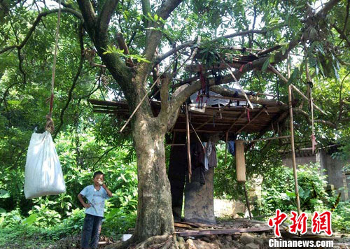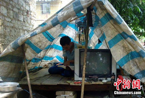 中新网南宁8月27日电 (马雁)广西玉林市一贫困学子因家遭雨灾,泥砖房屋被冲垮,只得在树上搭窝居住,且一住就是大半个月。期间,这名叫吴万杰的学子接到了湖北省长江大学的通知书,这一纸通知书让原本一贫如洗的家庭既喜又忧。8月26日,吴万杰为申请“生源地贷款”四处奔波,如果申请顺利,他大学四年的学费书费以及住宿费将基本有着落。