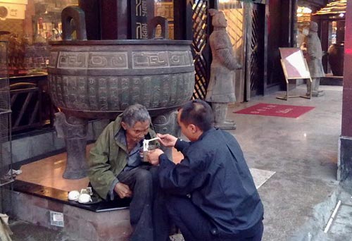 傍晚时分,旁边饭店一个姓张的保安队长,又看到了那个大爷,而且一直打颤,恐怕是饿了吧,保安就去工作的饭店做了一碗面条,于是就有了开始说的那一幕。那位大爷不像是乞讨者。希望看过这个贴子的人,有认识这位大爷的人,请通知他的家人去郑州经三路纬四路口附近找他,谢谢了。那位保安对一个陌生人的善良和对一个老者的孝顺,深深触动了我,让我感到惭愧的是,就连我爹我也没这样伺候过啊,我们河南的保安善良吗?