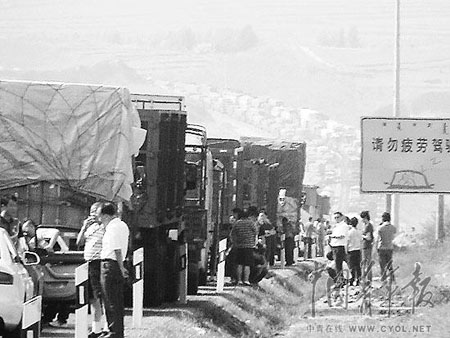 9月1日18时许,中国青年报记者搭车从集宁出发,沿110国道由西向东(即往北京方向——记者注)行驶。当驶过白海子收费站(位于察哈尔境内——记者注)约3公里时,记者远远地看到前方的大货车陆续停了下来,这条“车龙”见尾难见首。