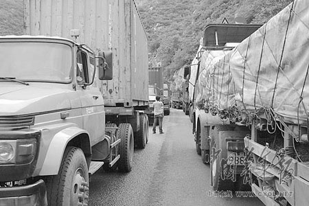 9月1日下午,在京藏高速公路冀蒙界路段等待通车的间歇,一位驾驶内蒙古集宁牌照汽车的司机告诉记者,他拉煤的路线是从内蒙古的托县到北京的昌平,如果不堵车,一般两天可以走完一个来回,“现在已经是第4天了,还没回到集宁”。