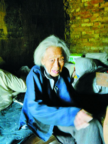 昨天,手机号为135××××8137的网友“路上影像图”短信提供新闻线索称,在洛阳市嵩县库区乡,93岁老人王五玉养有5个子女,但晚年的她却遭受孩子的虐待,住危房、没饭吃。追访记者调查后发现其生活的现状触目惊心,她的大儿子贾西有在洛阳市有两套住房,二儿子因不赡养老人被法院拘留过。