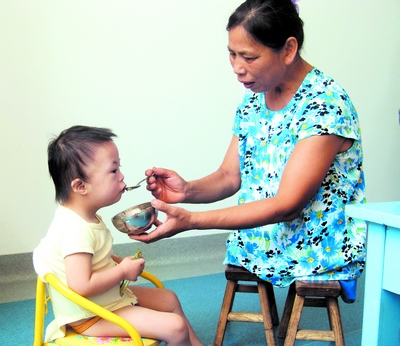昨日虽然是双休日,但在湘潭市社会福利院内,不论是中餐还是晚餐,一位中年妇女都没有休息,而是在细心地喂小男孩吃饭。谁也不会想到,这位妇女没有双腿。她叫许月华,今年55岁,孩子们都亲昵地叫她“大妈妈”。