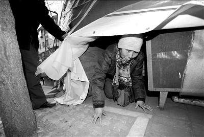 房子被儿子偷卖后,老人一度住在帐篷里。(资料图片)本报实习记者杨天啸摄