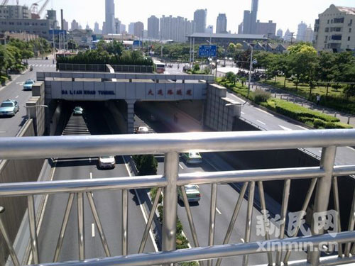 新民网记者11时许,赶到大连路隧道事发现场,这座天桥横跨大连路隧道,与隧道的垂直距离约10米,天桥两侧都有1米多高的护栏,并没有损坏的迹象。