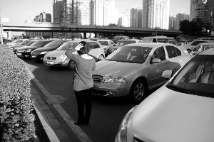 昨日17时30分许,交警在多次提醒无效的情况下,开始张贴罚单,占道近4个多小时的车辆陆续离开。