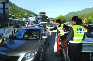 昨日,京藏高速居庸关长城收费站,车多拥堵。 本报记者 尹亚飞 摄