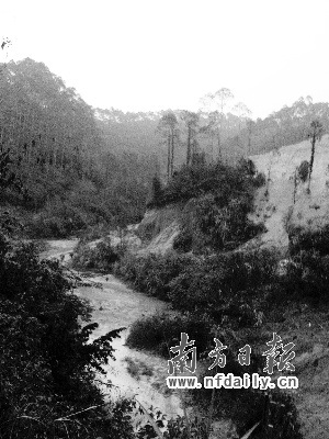 10月11日,记者在知情人指引下,从省道252线东坝村路段一条岔路口进去寻找矿点。进山后山间仅两米宽的泥泞路面跌宕起伏。每天从山里出产的珍贵白色稀土就是从这条山路运出。经过3公里的山路颠簸后,记者找到了第一个矿点。