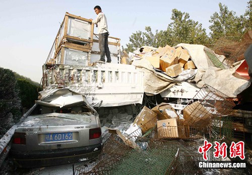 中新网武汉10月16日电 (记者 徐金波 张芹)受大雾天气影响,京港澳高速湖北段16日连续发生多起车祸,数十台汽车在3公里内连环相撞,武汉孝感两地数百人联手开展生命大救援。截至目前至少已造成8人死亡23人受伤,京港澳高速澳京方向车辆滞留近5个小时。