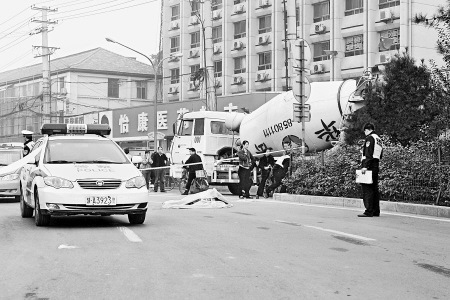 与死者同行的是一名六七十岁的老太太,回想起当时的场景,老人仍然显得很紧张,她说:“我们由南向北过马路时,她突然被一辆速度很快的水泥罐车撞上,车轮子把她卷进去拖了好几米远,我大声喊‘你车轧住人了’,可司机好像没听见,车没有停,后来一辆出租车追上去,才把水泥罐车追了回来。”