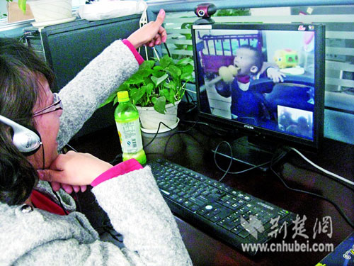 昨日,武昌东湖路附近一家IT企业,27岁的汉川籍白领小谢点开QQ,电脑屏幕上出现了3天没见面的1岁儿子身影(如图)。